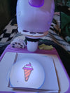 Muy linda tiene dos ascensores uno que pueden dibujar con música o sin ella la parte de arriba del unicornio es como una palanquita de ahí se prende lo pongo por que yo no sabía de donde se prendía.